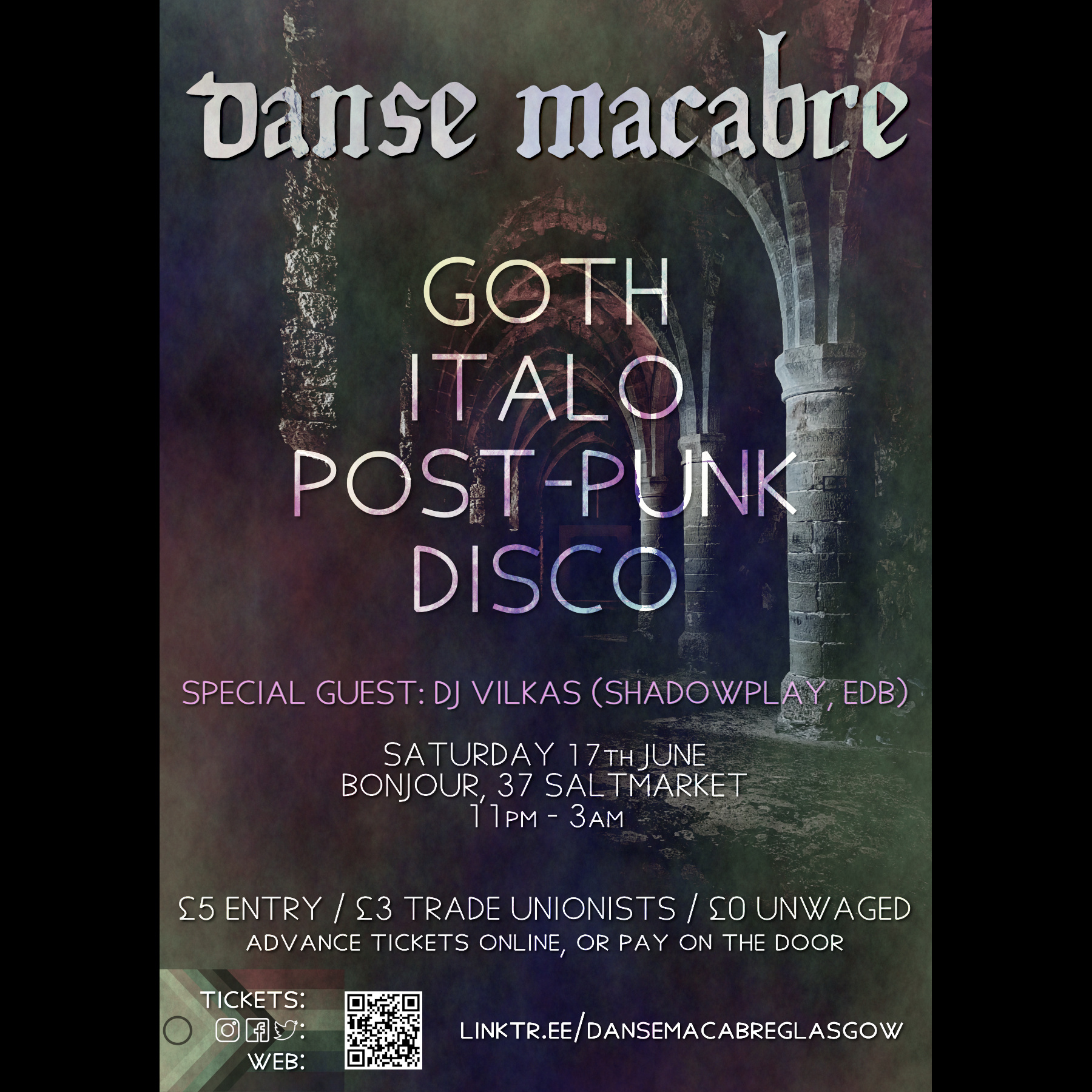 Danse Macabre operates a strict safe space policy and will not tolerate bigotry of any kind. Anyone who feels uncomfortable, harassed, or in danger, should immediately come to the DJ booth, and a member of venue staff or security will be called if required.